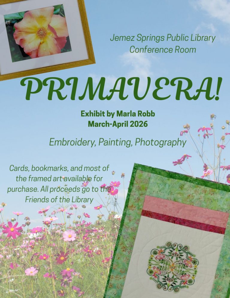 Services & Events ‘Primavera!’ Exhibit by Marla RobbGrowing Tomatoes in New Mexico: One Gardener’s ExperienceStorytime for Babes and TotsHomeschool GroupBook ChatFriday FunDodici Azpadu Writing WorkshopBook ClubTai ChiCrafternoons‘Playing for Change’ Music for PeaceImprov @ the LibraryPoetry ClubGarden Talks Mar.-Jun. 2026Total Body Conditioning & Deep StretchingDungeons & DragonsLibrary Card RenewalStorytime Special Guest: Dot the StorytellerLinda Vozar Sweet Writing Workshop