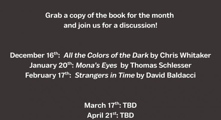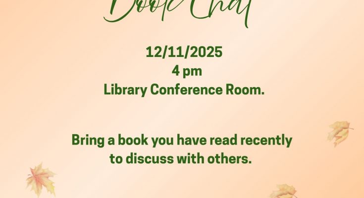 2nd Thursday of the month, 4 pm, Library Conference Room. Next two meetings: December 11th and January 8th. Adults.