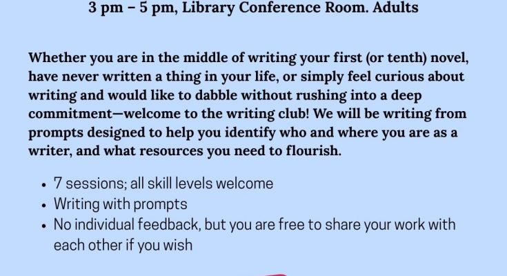 2nd and 4th Saturday of the month, starting January 24: January 24, February 14 & 28, March 14 & 28, April 11 & 25. 3 p.m. – 5 p.m. Library Conference Room.