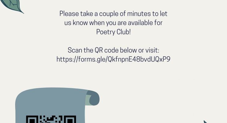 To help us determine the best meeting time for this club, please take our survey at https://forms.gle/XLKk8dxmHjicxmou8 or scan the QR code on the flyer!