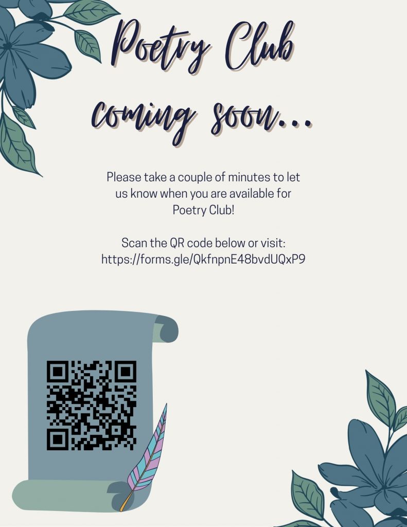 EventsPoetry Club Please take the poll to help us determine our next steps! https://forms.gle/QkfnpnE48bvdUQxP9